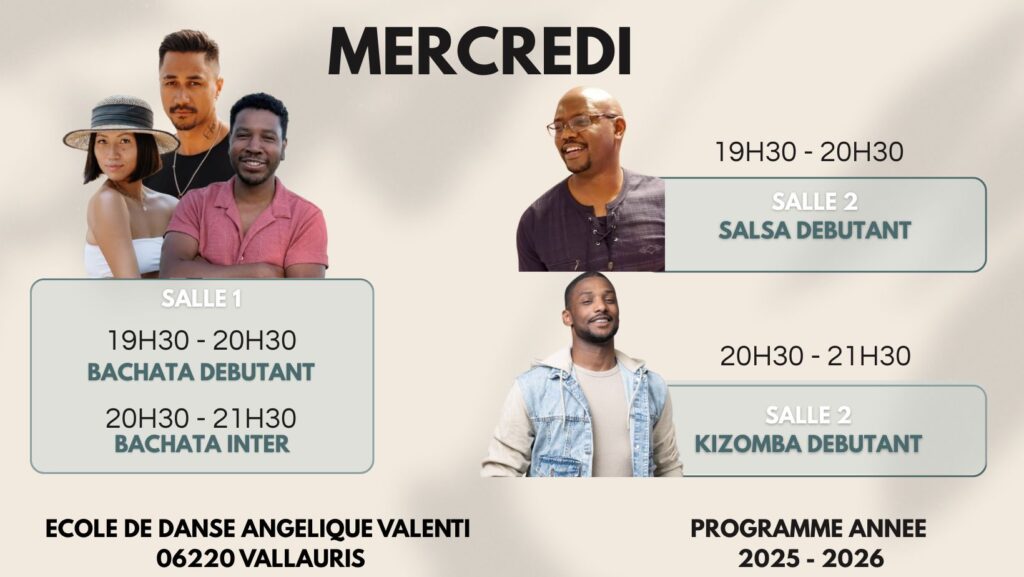 Tous les mercredis, à partir du mercredi 17 septembre 2025 (hors journée portes ouvertes du 10 septembre), chez Ecole de Danse Angélique Valenti, au 181 Chem. du Puissanton, 06220 Vallauris :
